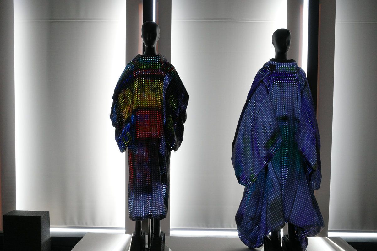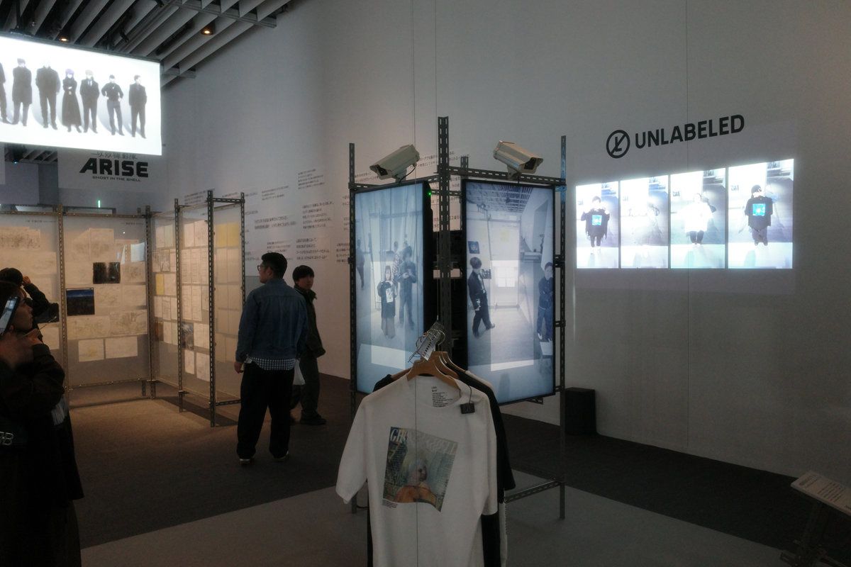 另外在展區還有一些互動體驗,如中間有一區則將攝影機拍攝到的參觀者變成作品當中知名的「笑面男」,另外還有一區只要拿起旁邊衣架的T-Shirt,旁邊的攝影機拍攝的畫面會呈現啟動「光學迷彩」的隱形狀態。