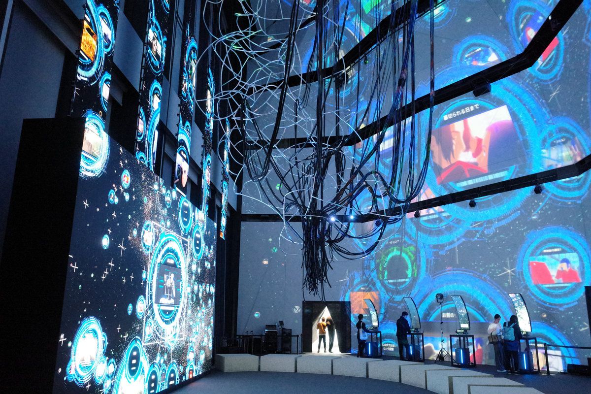 剛踏入展區就是整個展覽唯一具有震撼聲光效果的互動區域,除了在圓形球頂空間投射影像,還可操作眼前的機器回顧不同作品的精彩片段,還可手動過濾作品,以及自人物、情節、音樂等條件進行篩選,能夠幫助資深粉絲喚醒自己印象最深刻的環節。後續穿過帶有歷代作品海報與播致鬱系導演押井守的訪談影片的走廊後,就準備進入主要展區。