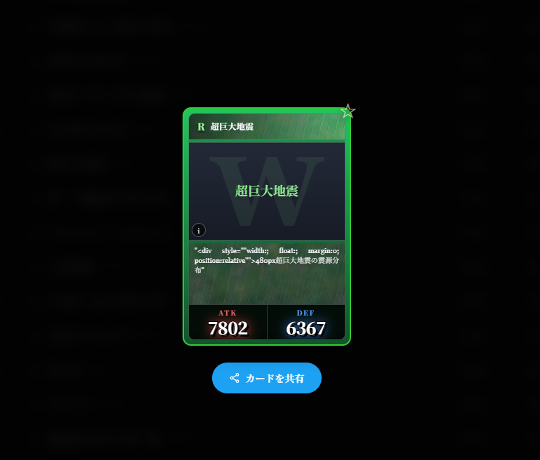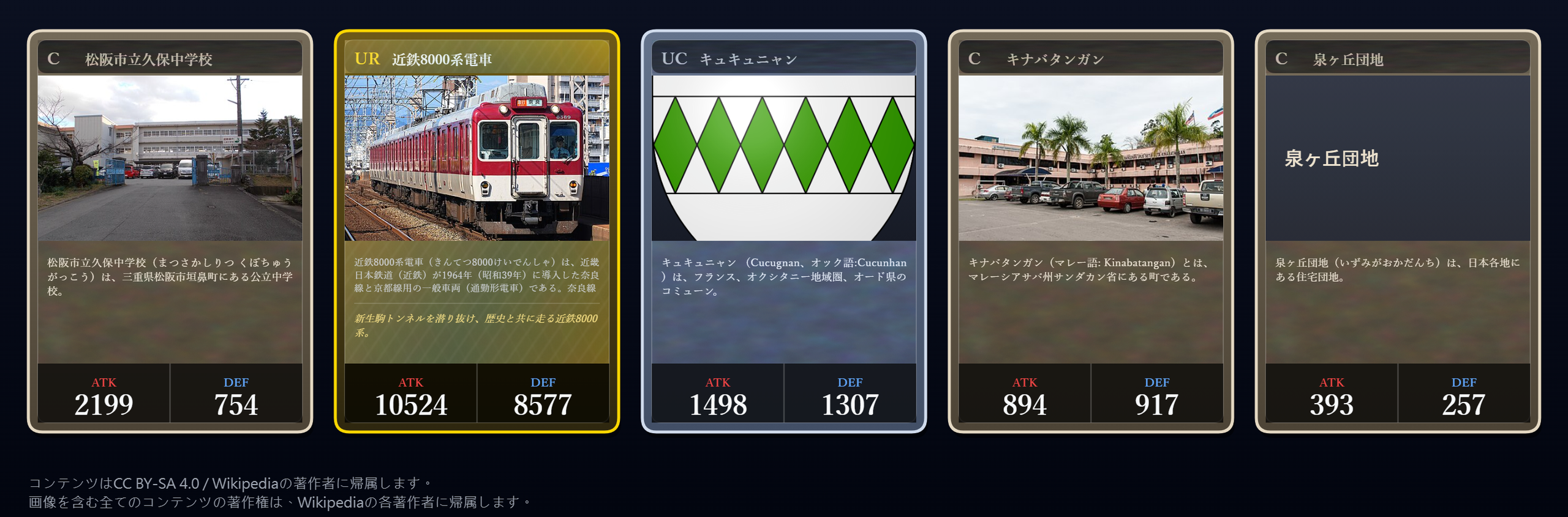 寶可夢、魔法風雲會、遊戲王加起來都沒這次的卡牌種類多,什麼卡包這麼誇張?那就是由日本開發者harusugi所開發的「維基百科抽卡(Wikipedia Gacha)」。簡單來說他將維基百科條目製作成各種稀有度的卡牌,並且依據頁面瀏覽量與內容長度分配攻擊力與防禦力,讓這674萬張卡牌真的能用來對戰。目前維基百科抽卡只要用瀏寶可夢、魔法風雲會、遊戲王加起來都沒這次的卡牌種類多,什麼卡包這麼誇張?那就是由日本開發者harusugi所開發的「維基百科抽卡(Wikipedia Gacha)」。簡單來說他將維基百科條目製作成各種稀有度的卡牌,並且依據頁面瀏覽量與內容長度分配攻擊力與防禦力,讓這674萬張卡牌真的能用來對戰。目前維基百科抽卡只要用瀏